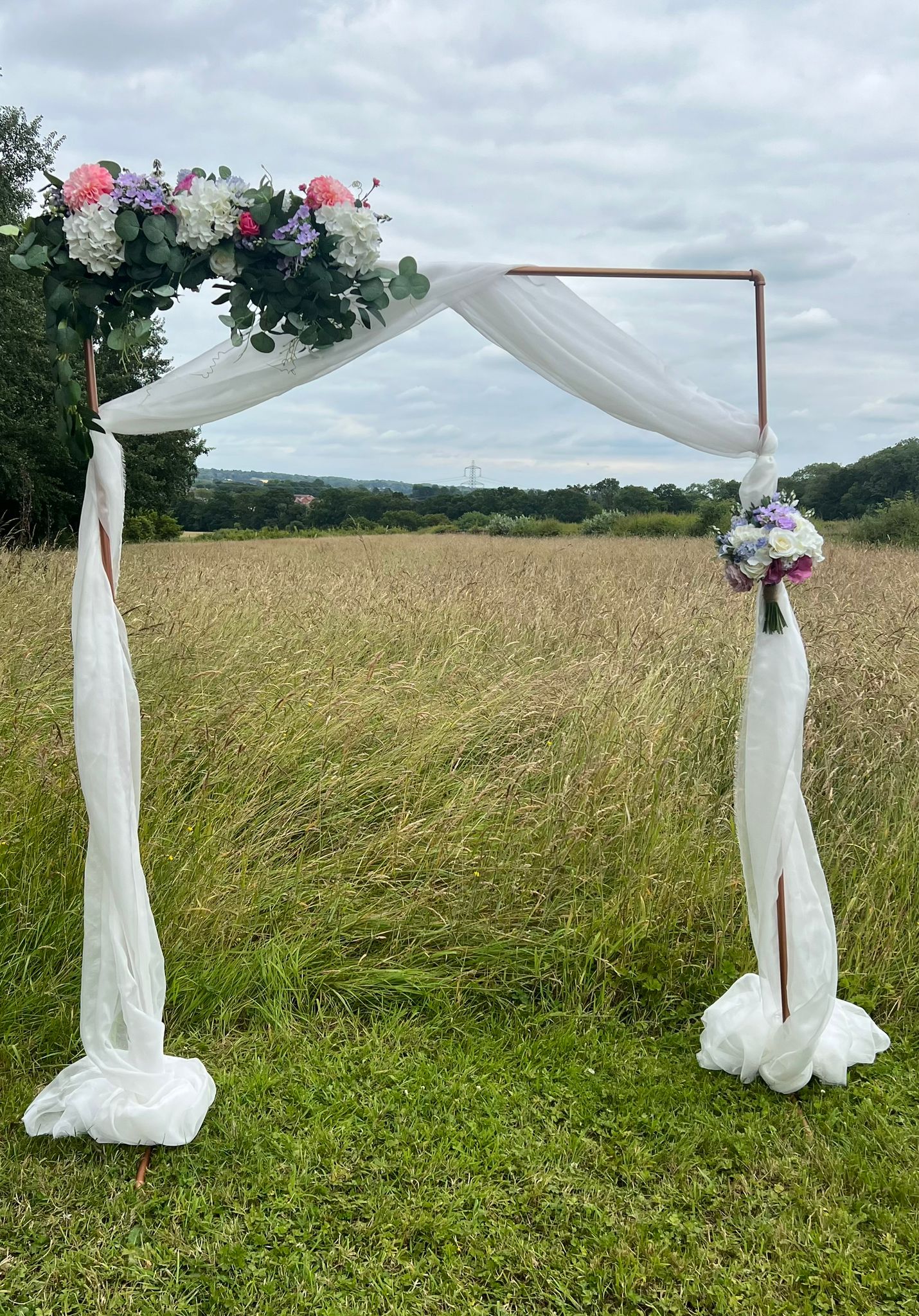 Let us know if you would also like to include the fabric and flowers in your package for an extra fee. We will try and match your colour scheme as best as we can. All flowers are dried or artificial.